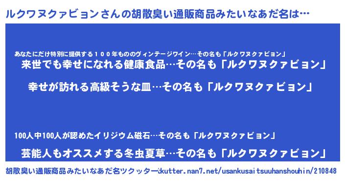 | 欧米人風あだ名 | 『ルクワヌクァビョンクリステル』 |