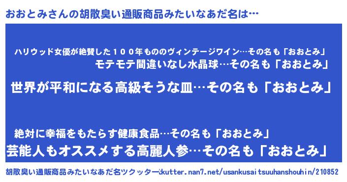 | 意味不明あだ名 | 『おおとみフォーエバー』『自称おおとみ』 |