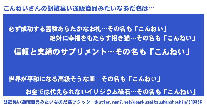 | 意味不明あだ名 | 『とにかく怪しいこんねい』 |
