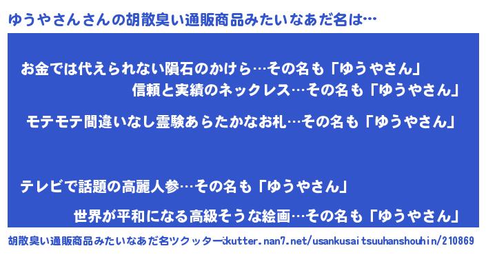 | 意味不明あだ名 | 『ペロリンゆうやさん』『自称ゆうやさん』 |