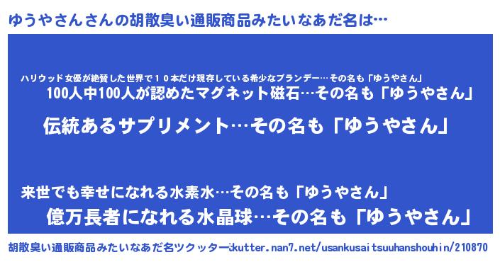| 欧米人風あだ名 | 『ウサインゆうやさん』 |