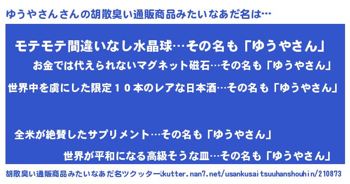 | 男性向けラノベタイトル風あだ名 | 『この素晴らしい世界にゆうやさんを!』 |