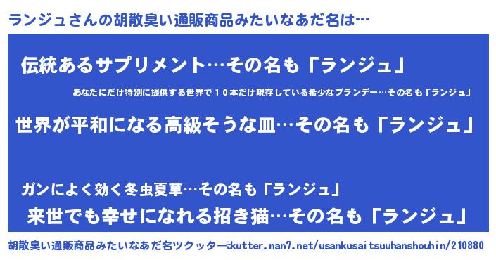 | 意味不明あだ名 | 『ランジュフォーエバー』『自称ランジュ』 |
