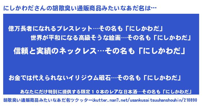 | 意味不明あだ名 | 『とにかく怪しいにしかわだ』 |
