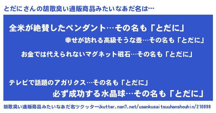| ヘコむあだ名 | 『とだ太郎』『とだっふぃ~』 |