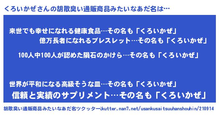 くろいかぜさんの胡散臭い通販商品みたいなあだ名をツクッター!
