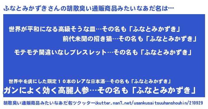 | 女子向けラノベタイトル風あだ名 | 『ふなとみかずき姫と円卓の騎士』 |
