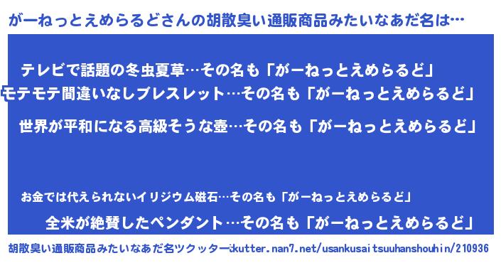 | 意味不明あだ名 | 『がーねっとえめらるどフォーエバー』 |