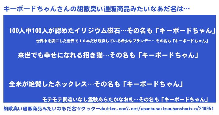 | ヘコむあだ名 | 『キーボードちゃん(笑)』『キーもー』 |
