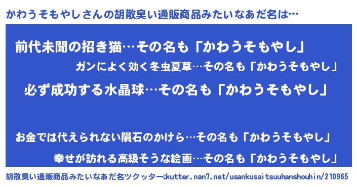 | ヘコむあだ名 | 『かわにゅー』『かわうそもやし(震え声)』 |