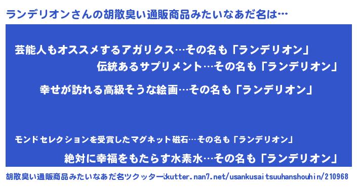 | 恥ずかしいあだ名 | 『ランっちょ』『ランデリオンデラックス』 |
