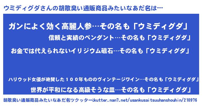 | 女子向けラノベタイトル風あだ名 | 『ウミディグダ恋絵巻』 |