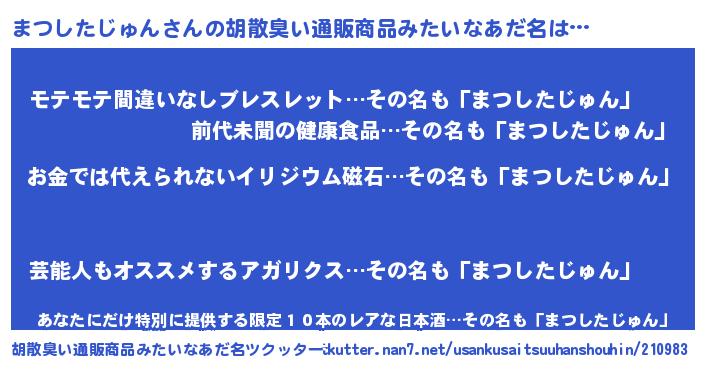 | ヘコむあだ名 | 『まつにゅー』『まつしたじゅん(苦笑)』 |