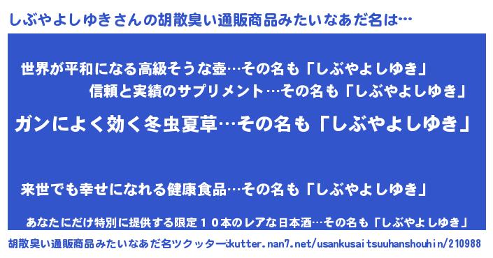 | 意味不明あだ名 | 『自称しぶやよしゆき』 |