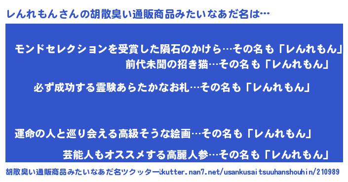 | 伝説のあだ名 | 『伝説のスナイパーレんれもん』 |
