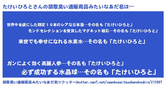 | 意味不明あだ名 | 『永久保存たけいひろと』 |