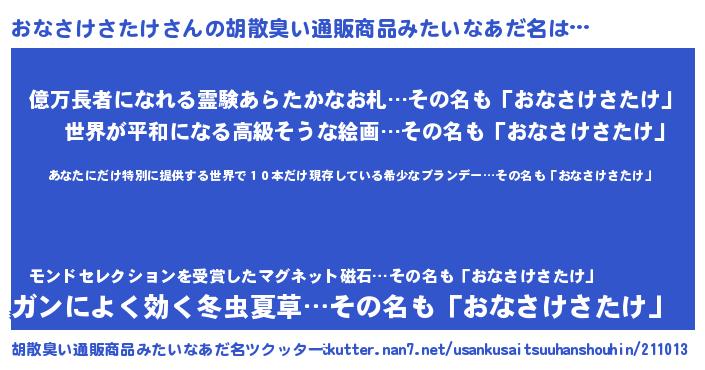 | 欧米人風あだ名 | 『ダレノガレおなさけさたけ』 |
