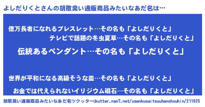 よしだりくとさんの胡散臭い通販商品みたいなあだ名をツクッター!