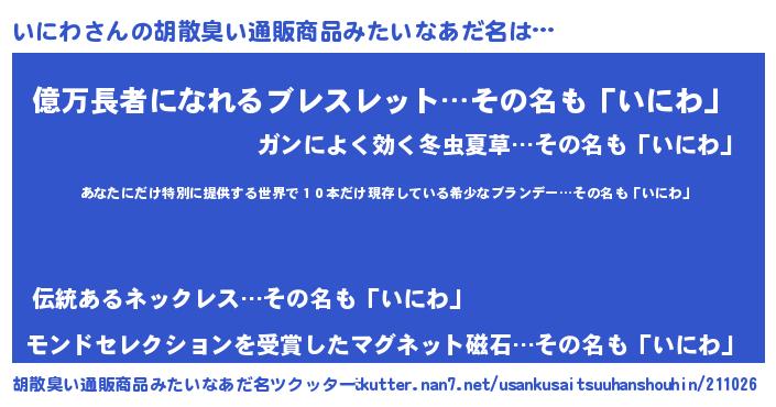 | ヘコむあだ名 | 『いにもー』『いにを』『いにわ(笑)』 |