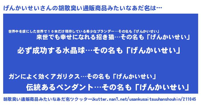 | ヘコむあだ名 | 『げんにゅー』『げんぷりん』 |