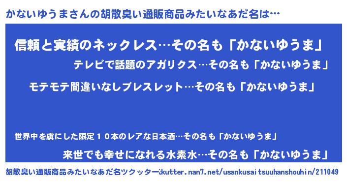 | 欧米人風あだ名 | 『マイケルかないゆうま』 |