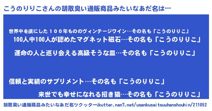 | 意味不明あだ名 | 『こうのりりこフォーエバー』 |