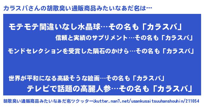 カラスバさんの胡散臭い通販商品みたいなあだ名をツクッター!