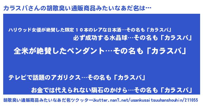 | 意味不明あだ名 | 『とにかく怪しいカラスバ』 |