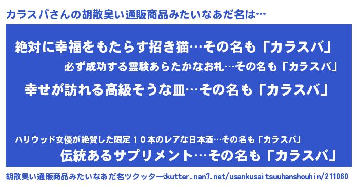 | 意味不明あだ名 | 『カラスバフォーエバー』 |