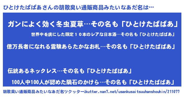 | ヒーロー風カッコイイあだ名 | 『スーパーヒトケタババア』 |