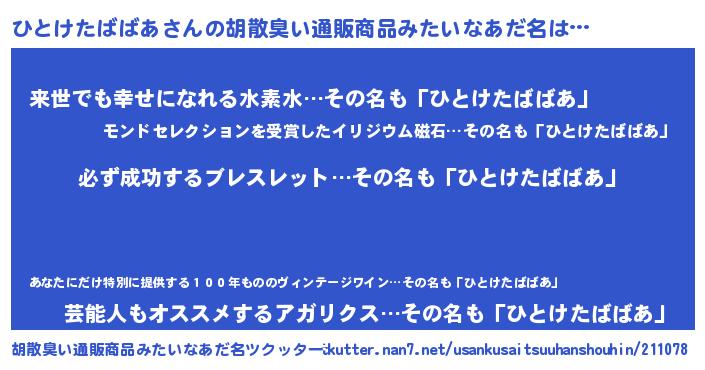 | 欧米人風あだ名 | 『アンジェラ・ひとけたばばあ』 |