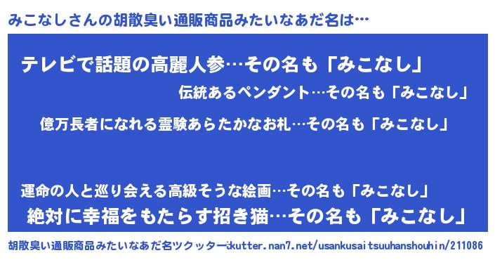 | 意味不明あだ名 | 『ペロリンみこなし』『自称みこなし』 |