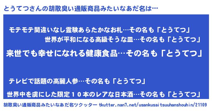 | 意味不明あだ名 | 『永久保存とうてつ』『ペロリンとうてつ』 |