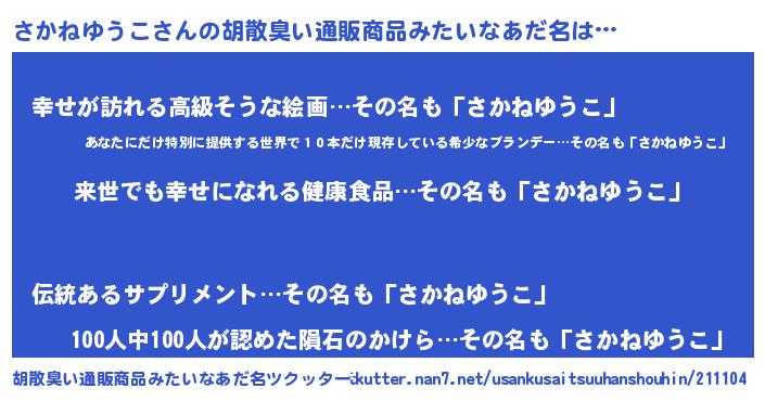 | 意味不明あだ名 | 『永久保存さかねゆうこ』 |