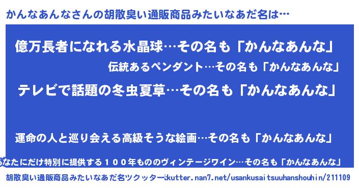 | 意味不明あだ名 | 『自称かんなあんな』 |