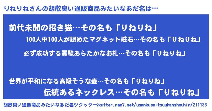 | 欧米人風あだ名 | 『マイケルりねりね』『ウサインりねりね』 |
