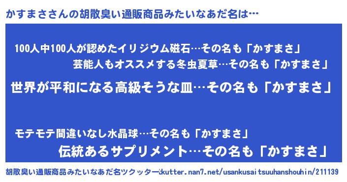 | 意味不明あだ名 | 『かすまさフォーエバー』『自称かすまさ』 |