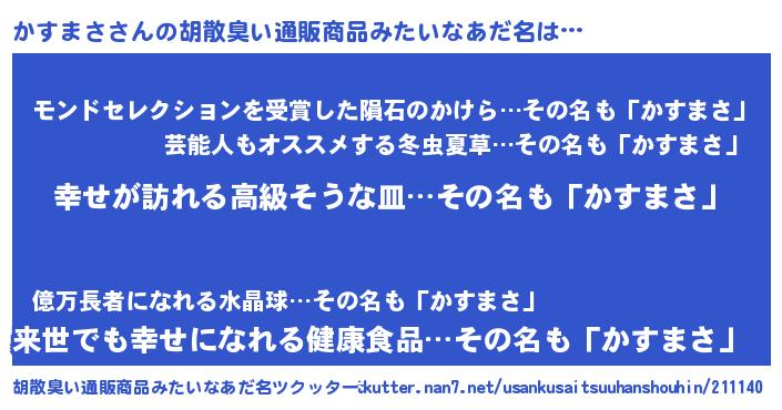 | 意味不明あだ名 | 『かすまさフォーエバー』『自称かすまさ』 |