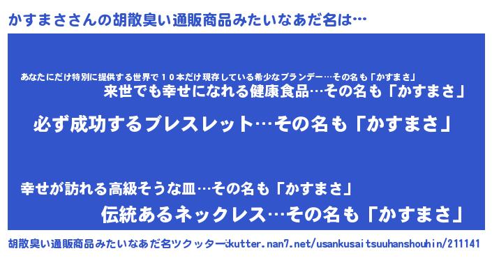 | 意味不明あだ名 | 『ペロリンかすまさ』『永久保存かすまさ』 |