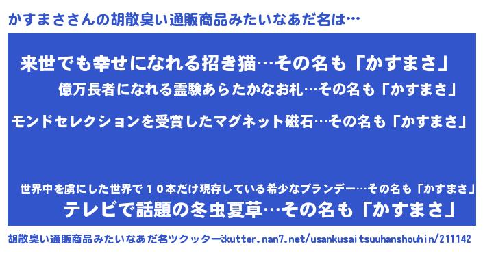 | ヘコむあだ名 | 『かすまさ(小並感)』『かすふぇ~』 |