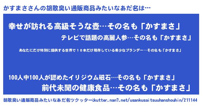 | ヘコむあだ名 | 『酢こんぶ』『かすまさ(笑)』 |