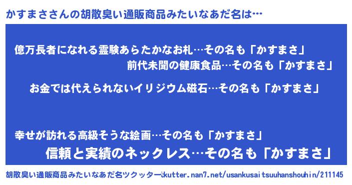 | 欧米人風あだ名 | 『ダニエルかすまさ』『マイケルかすまさ』 |