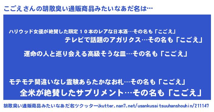 | 意味不明あだ名 | 『こごえフォーエバー』『自称こごえ』 |