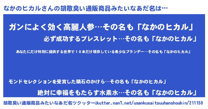 | 意味不明あだ名 | 『住所不定無職なかのヒカル(91歳)』 |