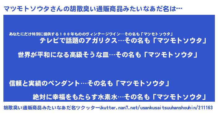 | 意味不明あだ名 | 『マツモトソウタフォーエバー』 |