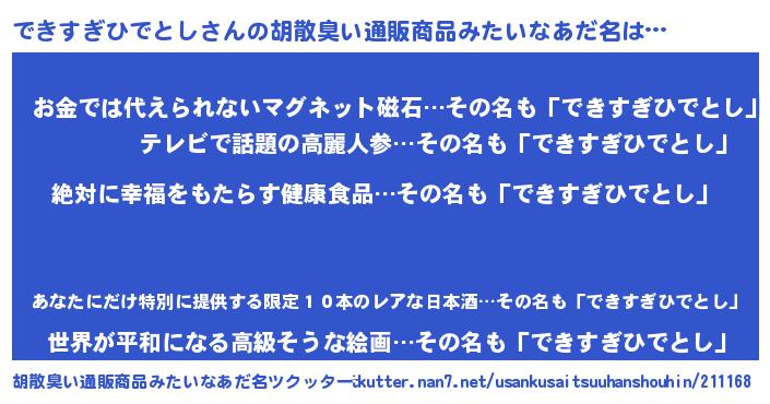 | ヘコむあだ名 | 『できすぎひでとし(笑)』『つくし』 |