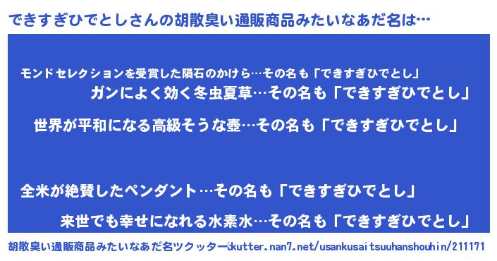 | 意味不明あだ名 | 『できすぎひでとしフォーエバー』 |