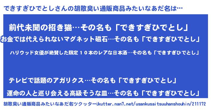 | 欧米人風あだ名 | 『ダレノガレできすぎひでとし』 |