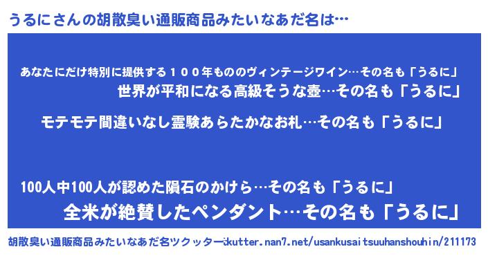 | ピコ太郎風あだ名 | 『ウコ十郎』『ウル五郎』『ピウ一郎』 |