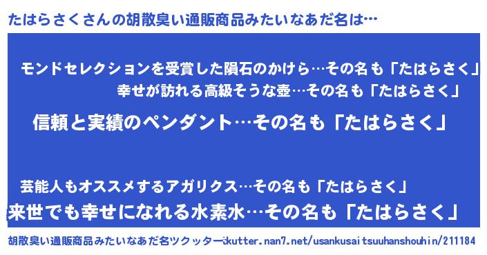 | 意味不明あだ名 | 『とにかく怪しいたはらさく』 |